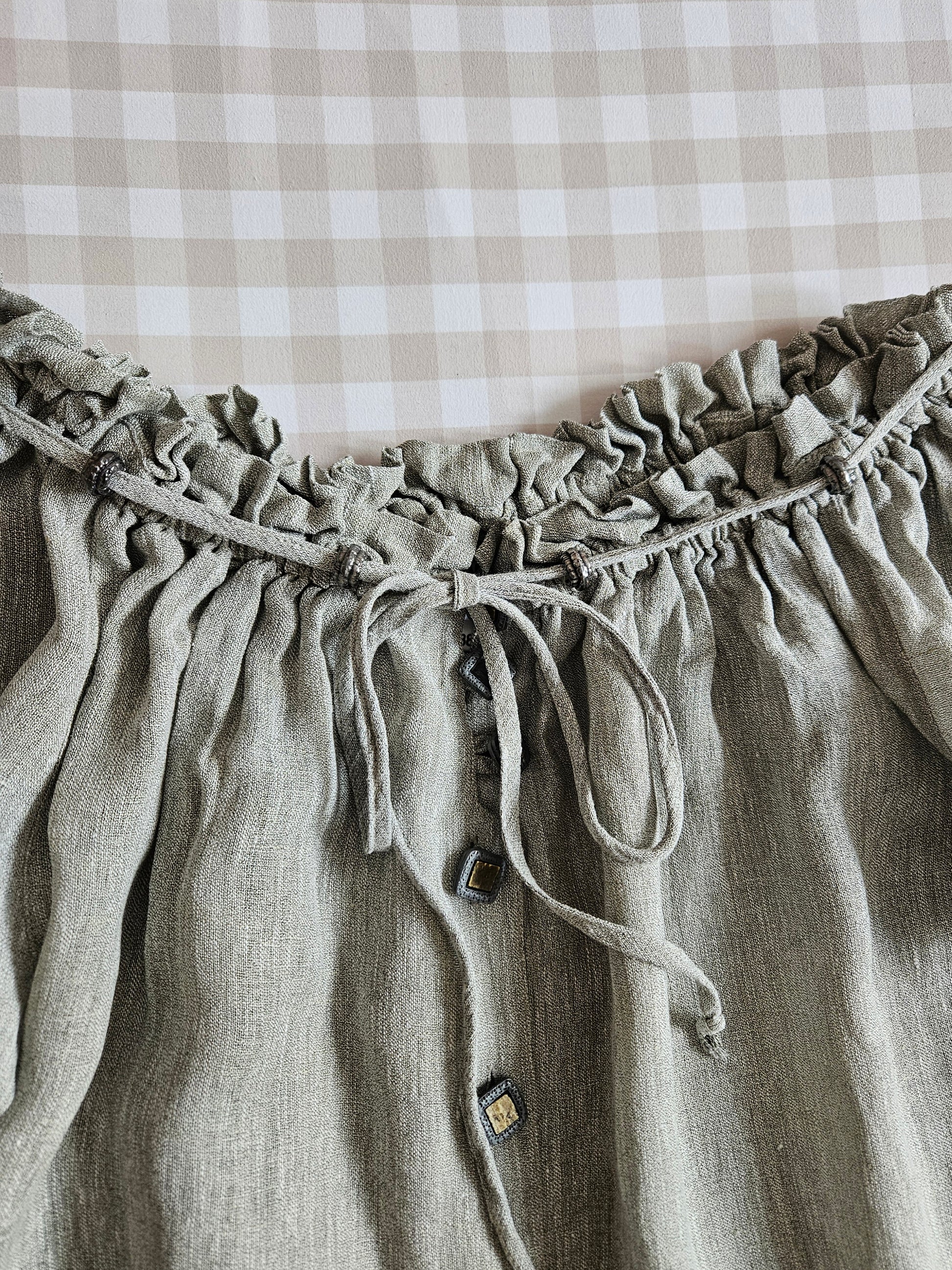 Haut en lin gris à laçage vintage style medieval - M